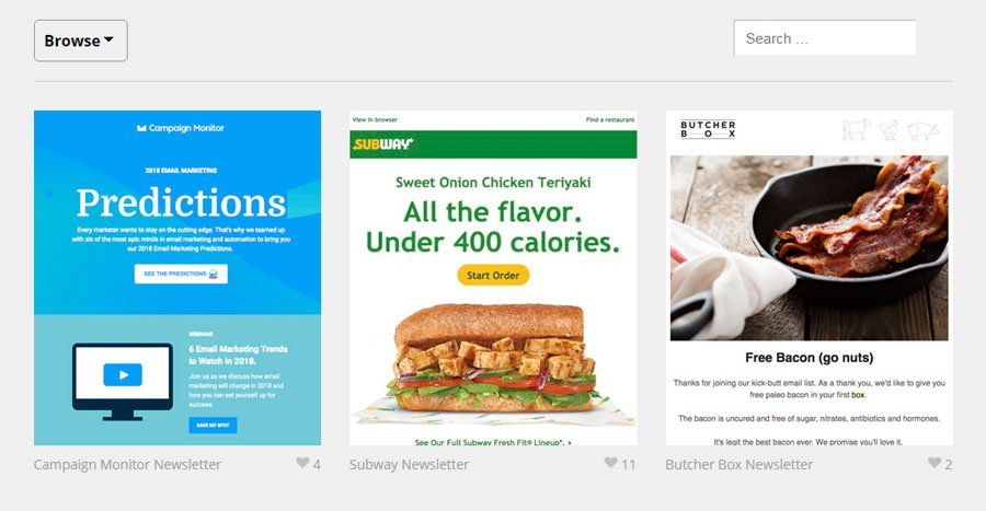 Lá, você poderá ver exemplos de e-mails enviados por empresas famosas, como Subway, Campaign Monitor e Shopify.